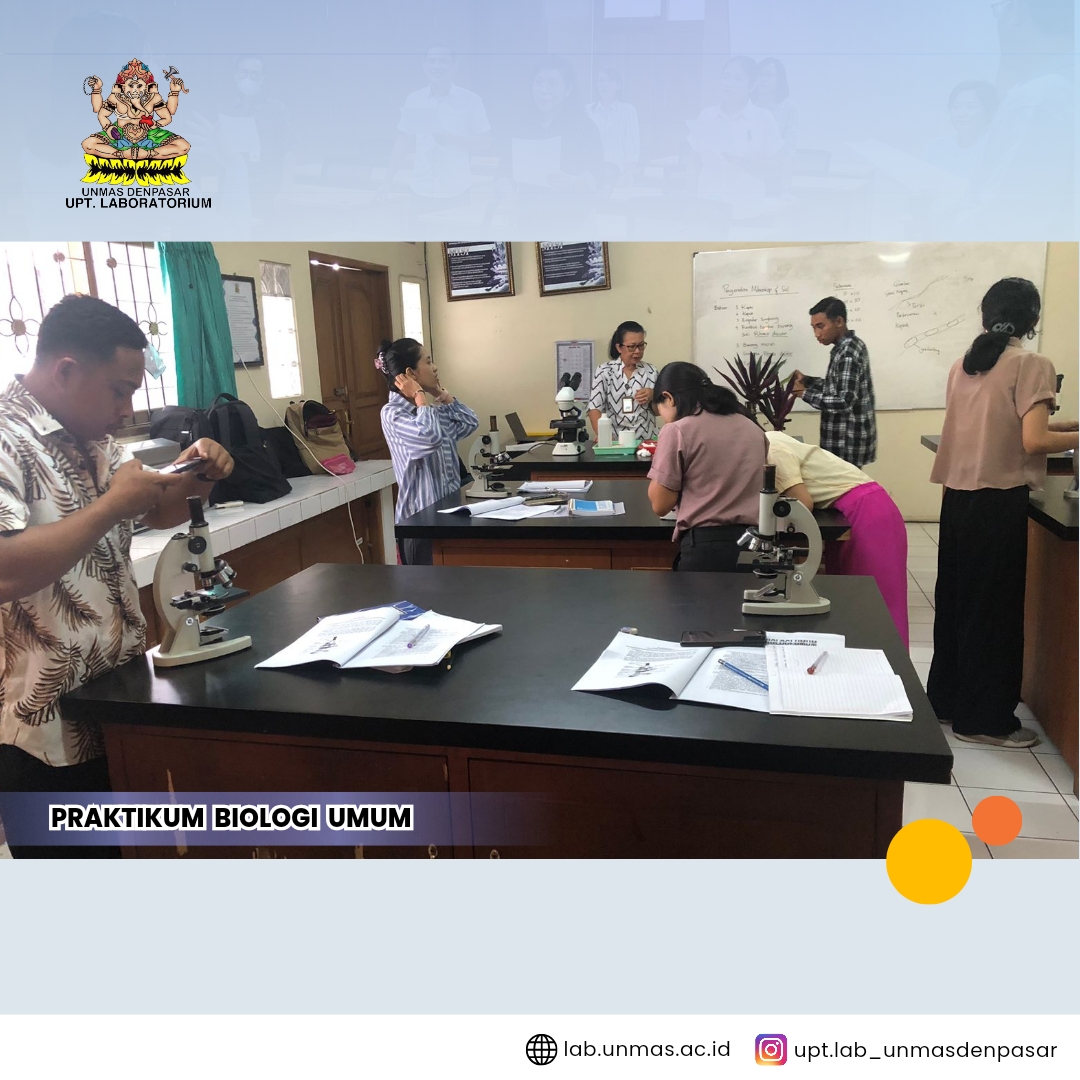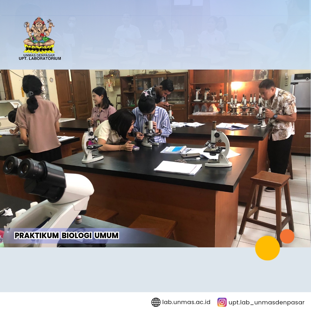 Pelaksanaan Praktikum Biologi Umum dengan topik pengenalan mikroskop dan pengamatan sel oleh mahasiswa Prodi Pendidikan Biologi di Laboratorium Biologi.