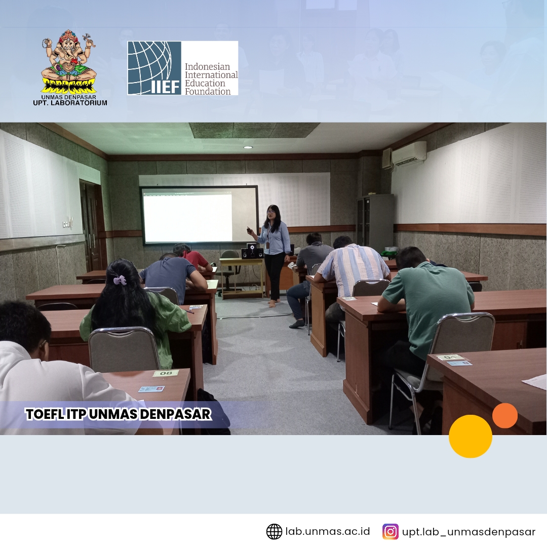 Tes TOEFL ITP yang diselenggarakan oleh UPT. Laboratorium Unmas Denpasar merupakan TOEFL Resmi yang dikeluarkan oleh ETS (Educational Testing Service) melalui IIEF (Indonesian International Education Foundation) yang setara dengan TOEFL Internasional.