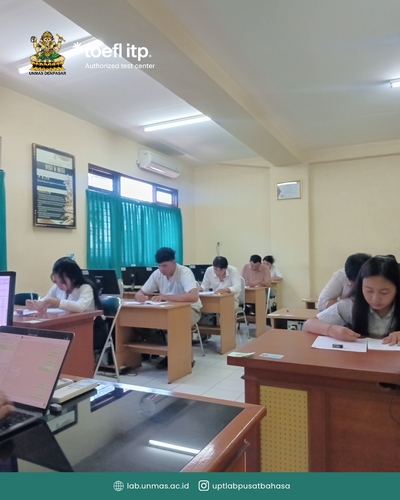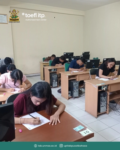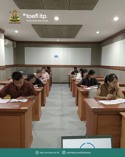Pelaksanaan Tes TOEFL ITP Periode 4 Desember 2025 diselenggarakan oleh UPT. Laboratorium dan Pusat Bahasa Unmas Denpasar yang diikuti oleh Peserta Mahasiswa Unmas Denpasar dan umum.